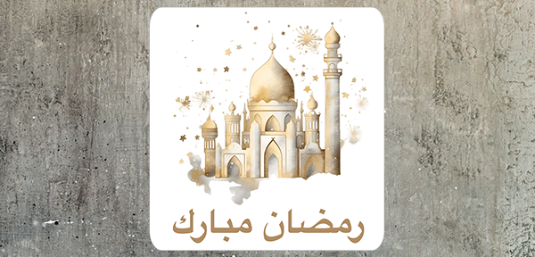 The design features a majestic masjid illustrated in shimmering gold tones, surrounded by delicate stars and festive bursts that symbolize the joy, light, and unity of Ramadan. The elegant "Ramadan Mubarak" or "Ramadan Kareem" text is displayed in graceful Arabic script, adding a heartfelt and celebratory touch. This timeless design evokes a sense of reverence and warmth, making it perfect for Ramadan gatherings, prayer, or daily wear during the holy month.